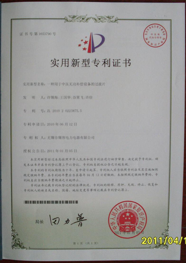 實(shí)用新型專利證書