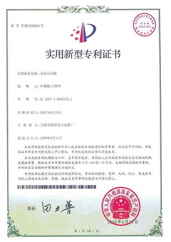 實(shí)用新型專利證書